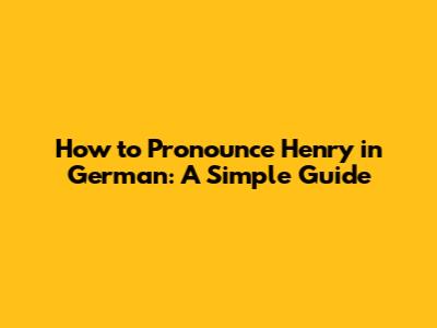 How To Pronounce 'Henry' In German: A Simple Guide