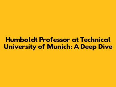 Humboldt Professor At Technical University Of Munich: A Deep Dive