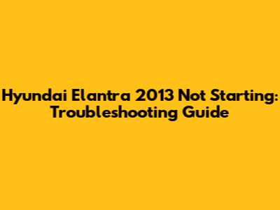 Troubleshooting Steps for Your Hyundai Elantra 2013 Starting Problem