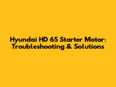 Hyundai HD 65 Starter Motor: Troubleshooting & Solutions