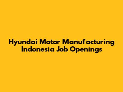 Hyundai Motor Manufacturing Indonesia Job Openings