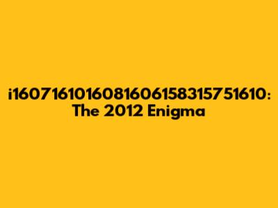 I1607161016081606158315751610: The 2012 Enigma