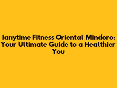 Ianytime Fitness In Oriental Mindoro: Your Guide
