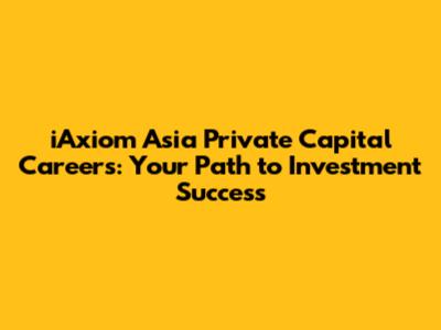 Hey everyone! Ever wondered what it's like to kickstart a career in the fast-paced world of private capital? Well, you're in the right place. Today, we're diving deep into iAxiom Asia Private Capital careers, exploring the exciting opportunities and what it takes to thrive in this dynamic industry. If you're passionate about finance, strategic investments, and making a real impact, then buckle up, because iAxiom might just be your launchpad to success. We'll cover everything from the types of roles available to the skills you'll need and how to position yourself for a winning application. So, grab a coffee, get comfortable, and let's unlock the doors to a rewarding career at iAxiom Asia Private Capital.