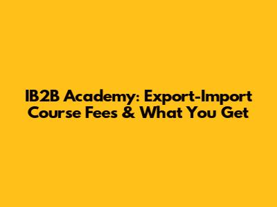 IB2B Academy: Export-Import Course Fees & What You Get