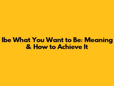 Ibe What You Want To Be: Meaning & How To Achieve It