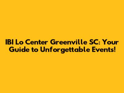 IBI Lo Center Greenville SC: Events You Won't Want To Miss!