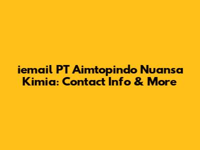 Alright guys, let's dive into everything you need to know about iemail PT Aimtopindo Nuansa Kimia! Whether you're trying to get in touch with them for business inquiries, job opportunities, or just need some information, this article will cover all the essentials. We'll explore what Aimtopindo Nuansa Kimia does, why you might want to contact them, and most importantly, how to reach them effectively.