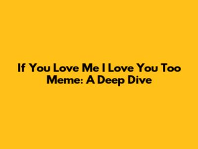 Hey everyone! Ever stumbled upon the "If You Love Me I Love You Too" meme and wondered what it's all about? Well, you're in the right place! This meme, with its simple yet powerful message, has taken the internet by storm, and today, we're diving deep into its origins, meaning, and why it's so darn popular. So, buckle up, guys, because we're about to explore the world of this heartwarming internet sensation.