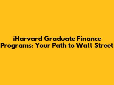 IHarvard Graduate Finance Programs: Your Path To Wall Street