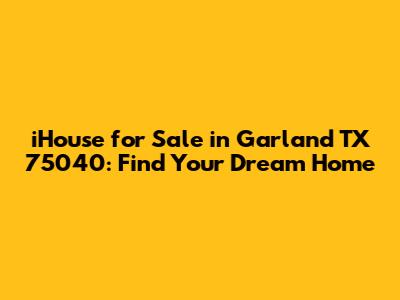 Finding an iHouse for sale in Garland, TX 75040 can be an exciting journey! With its excellent schools, convenient location, and vibrant community, Garland offers a fantastic place to call home. By understanding what to look for in an iHouse, conducting thorough research, and partnering with the right real estate professionals, you can find the perfect property to suit your needs and lifestyle. Happy house hunting!