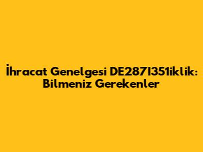 İhracat Genelgesi DE287I351iklik: Bilmeniz Gerekenler