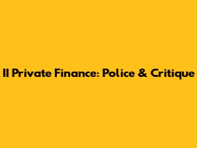 II Private Finance: Police & Critique