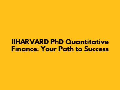 IIHARVARD PhD Quantitative Finance: Your Path To Success