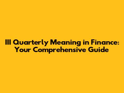 III Quarterly Meaning In Finance: Your Comprehensive Guide