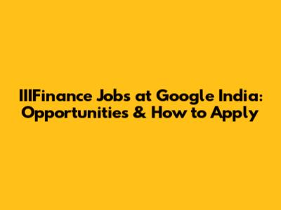 How to Find and Apply for IIIFinance Jobs at Google India