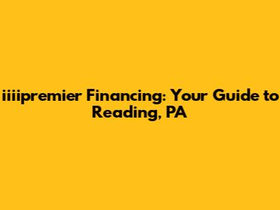 Hey guys! Are you in Reading, PA, and looking for some financial help? Well, you're in luck! This guide is all about iiiipremier financing in Reading, PA, and how it can help you out. We're going to dive deep into what iiiipremier is, how it works, and how it can benefit you. Whether you're trying to purchase a home, consolidate debt, or even just need some extra cash, iiiipremier might be the answer you're looking for. So, let's get started and explore the world of iiiipremier financing right here in Reading, PA!