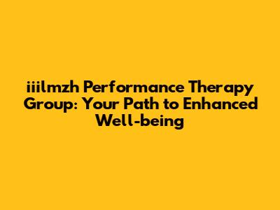 Iiilmzh Performance Therapy Group: Enhance Your Well-being