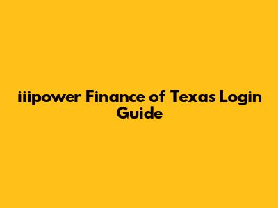 Iiipower Finance Of Texas Login Guide