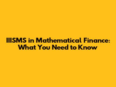 IIISMS In Mathematical Finance: What You Need To Know