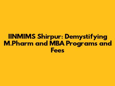 IINMIMS Shirpur: M.Pharm & MBA Fees & Program Details