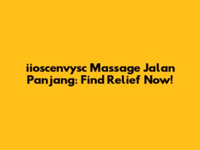 Iioscenvysc Massage Jalan Panjang: Find Relief Now!