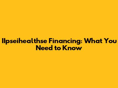 IIpseihealthse Financing: What You Need To Know