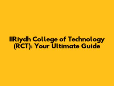 IIRiydh College Of Technology (RCT): A Comprehensive Guide
