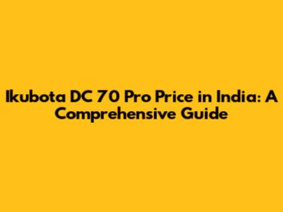Ikubota DC 70 Pro Price In India: A Comprehensive Guide