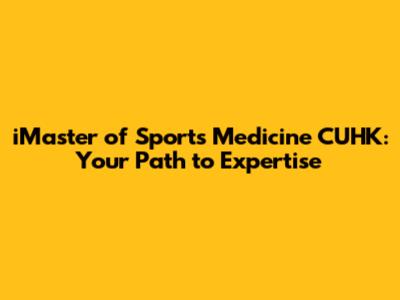 IMaster Sports Medicine CUHK: Your Path To Expertise