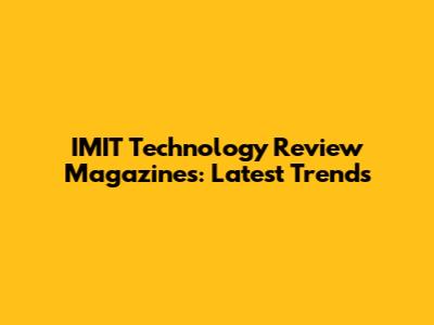 IMIT Technology Review Magazines: Latest Trends