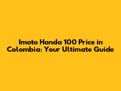 Imoto Honda 100 In Colombia: Price And Buying Guide