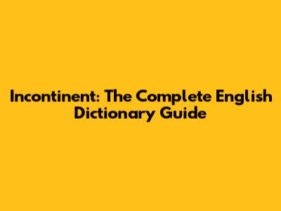 Incontinent: The Complete English Dictionary Guide