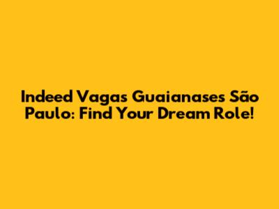 Indeed Jobs In Guaianases, São Paulo: Find Your Dream Role!