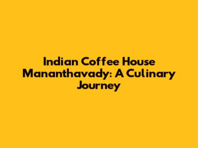 Indian Coffee House Mananthavady: A Culinary Journey