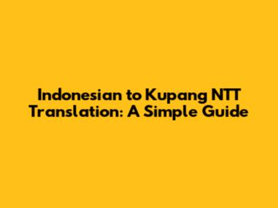 Indonesian To Kupang NTT Translation: A Simple Guide