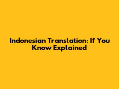 Indonesian Translation: If You Know Explained