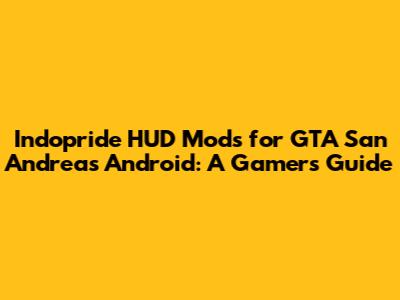 Indopride HUD Mods For GTA San Andreas Android: A Gamer's Guide