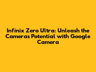 Infinix Zero Ultra: Boost Camera With Google Camera