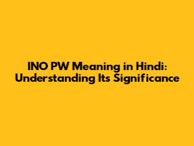 INO PW Meaning In Hindi: Understanding Its Significance