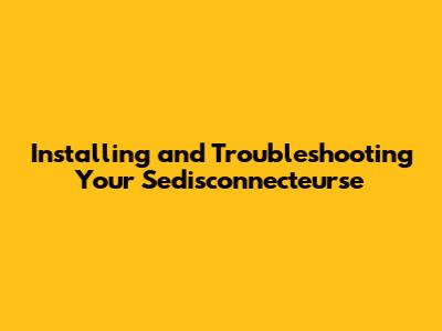 Installing And Troubleshooting Your Sedisconnecteurse