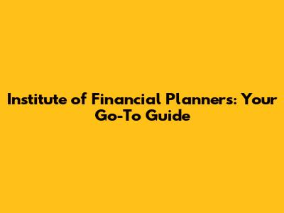 Institute Of Financial Planners: Your Go-To Guide