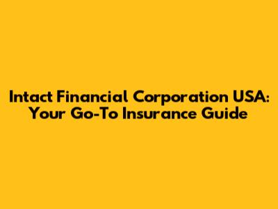 Intact Financial Corporation USA: Your Go-To Insurance Guide