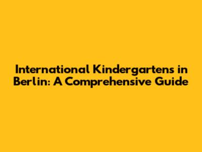International Kindergartens In Berlin: A Comprehensive Guide