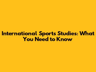 International Sports Studies: What You Need To Know