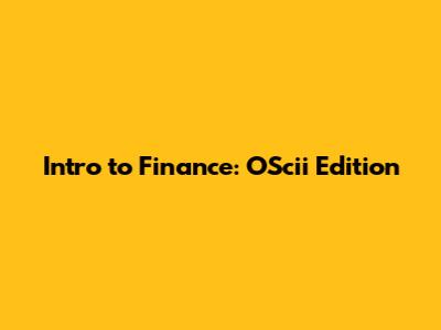Intro To Finance: OScii Edition