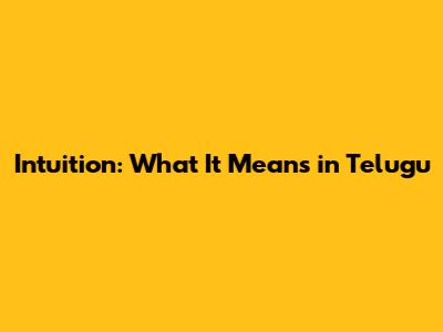 Intuition: What It Means In Telugu