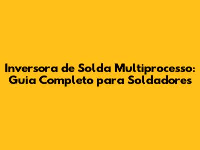 Inversora De Solda Multiprocesso: Guia Completo Para Soldadores