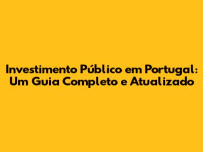 Investimento Público Em Portugal: Guia Completo E Atualizado