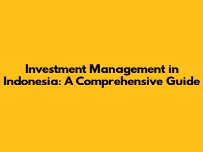 Investment Management In Indonesia: A Comprehensive Guide